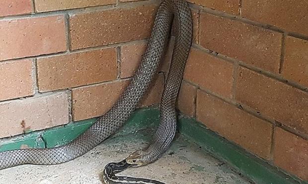 Το ζευγάρι κλήθηκε σε ένα σπίτι σε προάστια του Goodna, στα δυτικά του Μπρίσμπεϊν, στην Αυστραλία προκειμένου να πιάσει ένα φίδι.