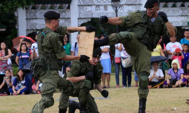 Οι Φιλιπινέζοι θεατές παρακολούθησαν με δέος τους Ρώσους επίλεκτους στρατιώτες να αναδεικνύουν το ταλέντο τους στις πολεμικές τέχνες με σκληρότητα αλλά και ευστοχία στις κινήσεις τους.