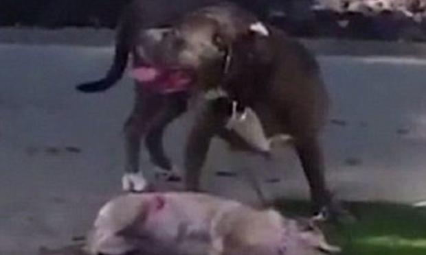 Χωρίς να μπορεί να αντιδράσει, έμεινε μια γυναίκα στο Λος Άντζελες, η οποία παρακολουθούσε σοκαρισμένη και γεμάτη δάκρυα ένα pitbull να κατασπαράζει το μικρό σκυλάκι της.