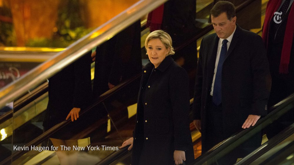 Η Λεπέν εθεάθη σ΄ένα καφέ στο ισόγειο του "Πύργου Tραμπ" με τρεις άνδρες: τον σύντροφό της και υπ' αριθμόν 2 του κόμματος Λουί Αλιό, τον Ιταλό επιχειρηματία Γκίντο Λομπάρντι και τον 70χρονο Πιερ Σεϊράκ. Πρόκειται για τον ανιψιό του Φρανσουά Σεϊράκ, πρώην προέδρου του Εθνικού Συμβουλίου των Γάλλων Εργοδοτών ο οποίος διατηρεί καλές σχέσεις με την οικογένεια Λεπέν.
