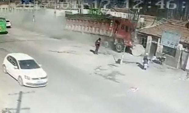 Σύμφωνα με το China National Radio, ένα φορτηγό παρουσίασε πρόβλημα στα φρένα και έπεσε πάνω σε τρία παλιά σπίτια, σκοτώνοντας τουλάχιστον πέντε ανθρώπους.