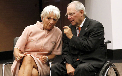 Μια μέρα πριν ο Γερμανός υπουργός Οικονομικών Βόλφγκανγκ Σόιμπλε άφησε να εννοηθεί ότι θα διακόψει το ελληνικό πρόγραμμα αν αποχωρήσει το ΔΝΤ , αλλά η διευθύνων σύμβουλος του ταμείου, Κριστίν Λαγκάρντ, τον διαβεβαίωσε για την υποστήριξή της.