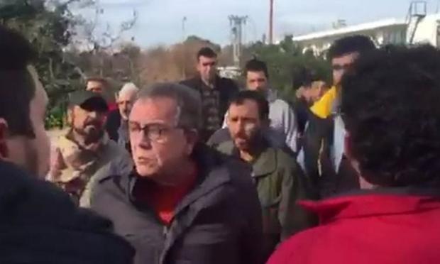 Θέλησε ο ίδιος να "σπάσει" το λουκέτο με το οποίο είναι κλειδωμένη η πόρτα. Όταν οι πρόσφυγες του είπαν πως δεν μπορεί να περάσει, τους απάντησε «go away».