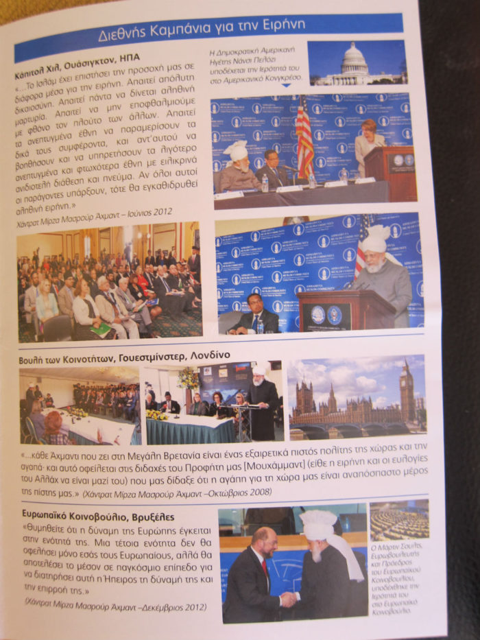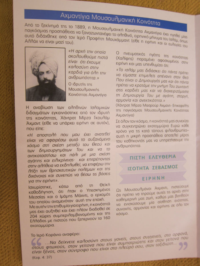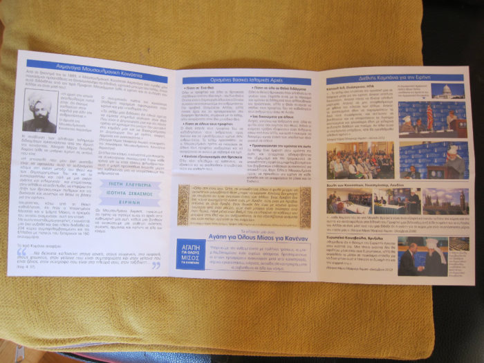 Με μεγάλα λόγια περί καλοσύνης, ειρήνης, σεβασμού, ισότητας, πίστης και ελευθερίας η αυτοαποκαλούμενη Μουσουλμανική Κοινότητα Αχμαντίγια καλούσε σε “ενότητα, συνοχή και αρμονία”.