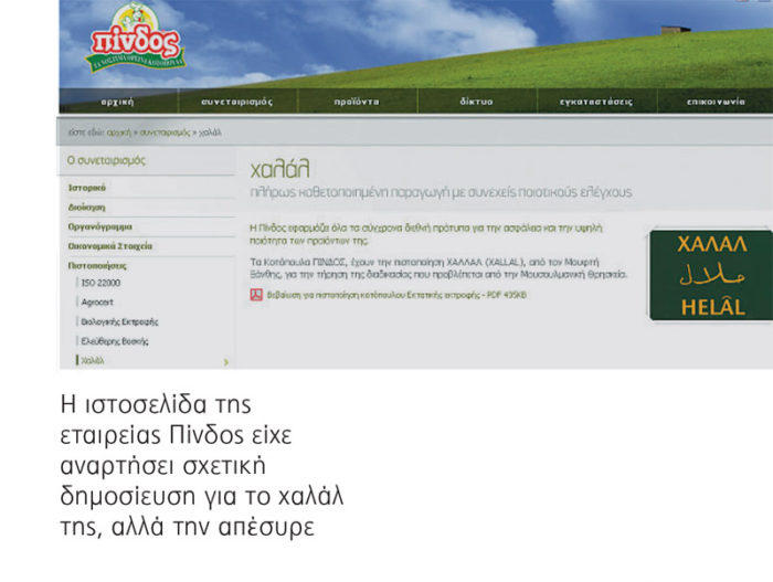 Είναι αξιοσημείωτο μάλιστα ότι η συγκεκριμένη εταιρεία είναι από τους βασικούς προμηθευτές σε κοτόπουλα των ελληνικών Ενόπλων Δυνάμεων. Συγκεκριμένα, στην ιστοσελίδα της έγραφε: «Η “Πίνδος” εφαρμόζει όλα τα σύγχρονα διεθνή πρότυπα για την ασφάλεια και την υψηλή ποιότητα των προϊόντων της. Τα κοτόπουλα “Πίνδος” έχουν την πιστοποίηση “χαλάλ” από τον μουφτή Ξάνθης για την τήρηση της διαδικασίας που προβλέπεται από τη Μουσουλμανική Θρησκεία». Για του λόγου το αληθές, παρατίθεται και η βεβαίωση του μουφτή Ξάνθης Μεχμέτ Εμίν Σινίκογλου: «Εχουμε αναλάβει τη σχετική υποχρέωση να μεταβαίνουμε κάθε φορά και κατόπιν σχετικού αιτήματος στο πτηνοτροφείο της εταιρείας “Πίνδος” που βρίσκεται στη θέση Πίνδος των Ιωαννίνων, ως μια επιτροπή που αποτελείται από μένα και τους κυρίους... (σ.σ.: παρατίθενται τέσσερα ονόματα μουσουλμάνων κατοίκων Ξάνθης), προκειμένου να διαπιστώνουμε εάν και κατά πόσο τηρείται από τον Ζουμπούλ Αχμέτ, κάτοικο Ξάνθης και υπεύθυνο σφαγής των πτηνών, η διαδικασία που προβλέπεται από τη μουσουλμανική θρησκεία και η οποία επιβάλλει την αναφορά κατά τη σφαγή αυτών της ρήσης “Μπισμιλάχ Εραχμάν Εραχήμ, Αλλάχου Εκμπάρ”, που σημαίνει πιστοποίηση χαλάλ (halal)».