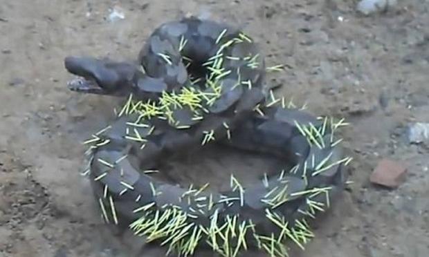 Έναν σκαντζόχοιρο φαίνεται πως έβαλε στο στόχαστρό του ο βόας της φωτογραφίας, στη Βραζιλία. Και πλήρωσε πολύ ακριβά αυτή την κακή του ιδέα, καθώς στην επιχείρηση να τον φάει γέμισε όλο το σώμα του με τα αγκάθια του σκαντζόχοιρου.
