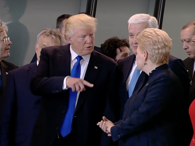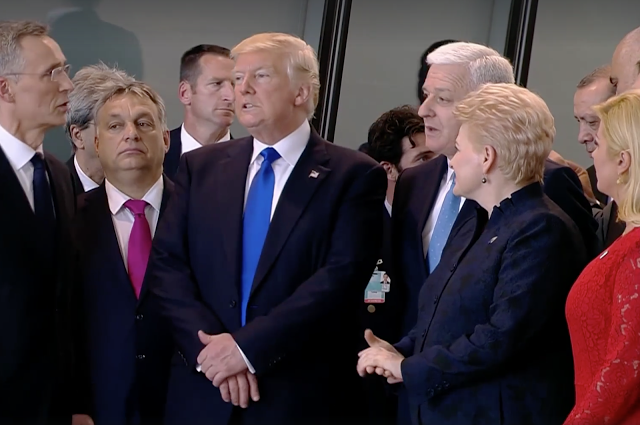 Ηταν τη στιγμή που οι ηγέτες θα έβγαζαν την οικογενειακή φωτογραφία, μετά την ολοκλήρωση της Συνόδου του ΝΑΤΟ. Ο Τραμπ κατέφθασε φουριόζος, προσπέρασε με ύψος χιλίων καρδιναλίων όλους τους ηγέτες και έσπρωξε βίαια τον Μαυροβούνιο πρωθυπουργό για να περάσει στην μπροστινή σειρά.