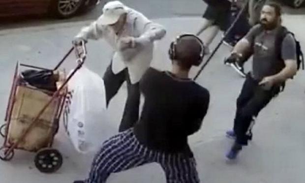 Το περιστατικό που συνέβη την περασμένη Παρασκευή στο Μανχάταν καταγράφηκε από κάμερες στο δρόμο. Ο νεαρός φαίνεται να περπατά στο δρόμο κρατώντας ένα μπαστούνι και να φορά ακουστικά. Κάποια στιγμή βλέπει μπροστά του τον ηλικιωμένο να σπρώχνει το καροτσάκι με τα ψώνια του και άνευ λόγου και αιτίας αρχίζει να τον χτυπά!