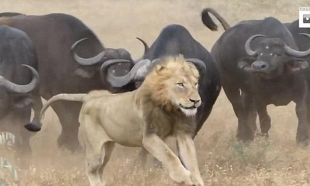 Ένα απίστευτο βίντεο ήρθε πρόσφατα στη δημοσιότητα και δείχνει τη στιγμή που δύο λιοντάρια επιτίθενται σ' ένα βουβάλι, ενώ λίγο μετά το μετανιώνουν και φεύγουν κακήν - κακώς, καθώς μία αγέλη βουβαλιών καταφθάνει προκειμένου να προστατεύσει το «φίλο» της.