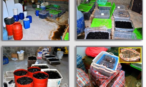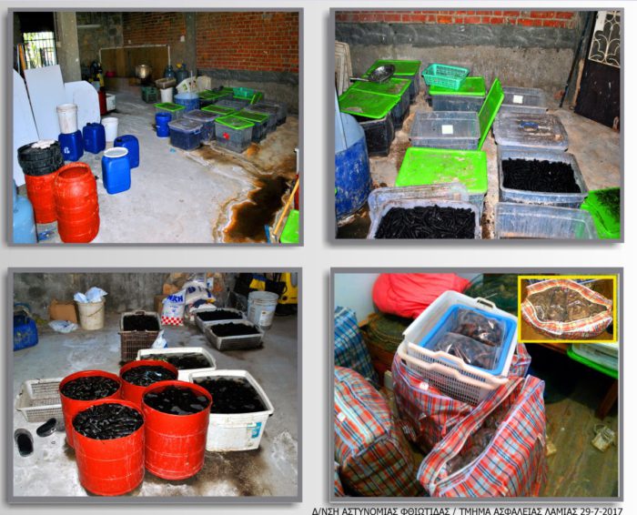Κατασχέθηκαν 110.481 αλιεύματα του γένους HOLOTHURIA, αποξηραμένα έτοιμα προς διάθεση, είτε σε διαδικασία επεξεργασίας, συνολικού καθαρού βάρους ενός τόνου και 374 κιλών.
