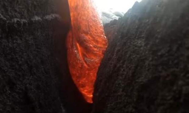 Ο Έρικ Στορμ, του Kilauea EcoGuides, μιας ομάδας που πραγματοποιεί ξεναγήσεις και έχει έδρα το εθνικό πάρκο Hawai'i Volcanoes, κατάφερε να χάσει την κάμερα του, GoPro, σε μια σχισμή που σιγά-σιγά γέμισε με λάβα.