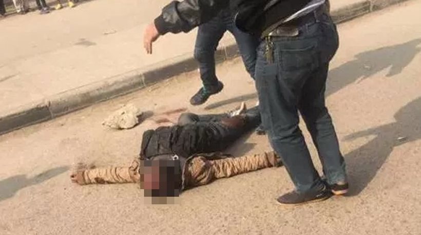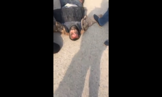 Φωτογραφία που «ανέβηκε» στο twitter δείχνει έναν άνδρα με γενιάδα πεσμένο στο έδαφος. Φορά στη μέση του ζώνη με πυρομαχικά.
