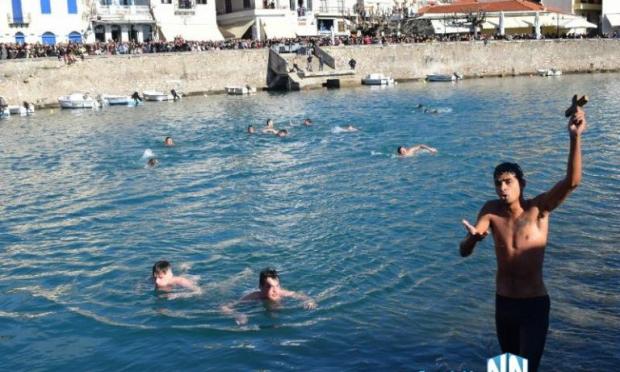Ο Μητροπολίτης τον προέτρεψε να κατευθυνθεί προς τους υπόλοιπους κάτι που ο νεαρός δεν έπραξε με αποτέλεσμα να κολυμπήσει πρώτος στον Σταύρο.