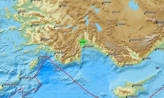 Ο σεισμός είχε επίκεντρο περιοχή που βρίσκεται 35χλμ. βόρεια της Αττάλειας, 220χλμ. βορειοανατολικά της Ρόδου και 330χλμ. βορειοδυτικά της Λευκωσίας.