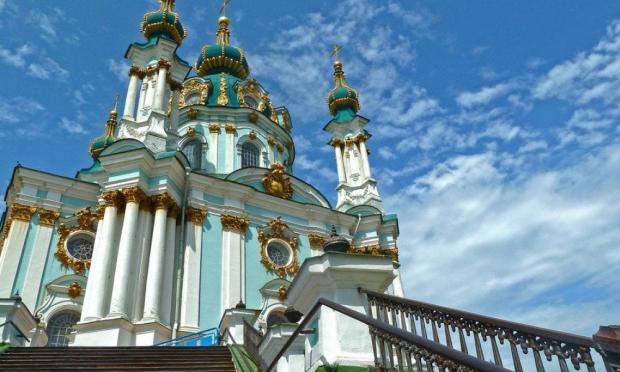 Αριστούργημα της μπαρόκ αρχιτεκτονικής και κτισμένος πάνω σε λόφο, ο ναός του Αγίου Ανδρέα με τους τιρκουάζ θόλους θεωρείται ένας από τους ωραιότερους του Κιέβου. Οικοδομήθηκε τον 18ο αιώνα, όταν η Ουκρανία αποτελούσε τμήμα της Ρωσικής Αυτοκρατορίας, πάνω στα σχέδια του γεννημένου στο Παρίσι ιταλού αρχιτέκτονα και διακοσμητή Μπαρτολομέο Φραντσέσκο Ραστρέλι.