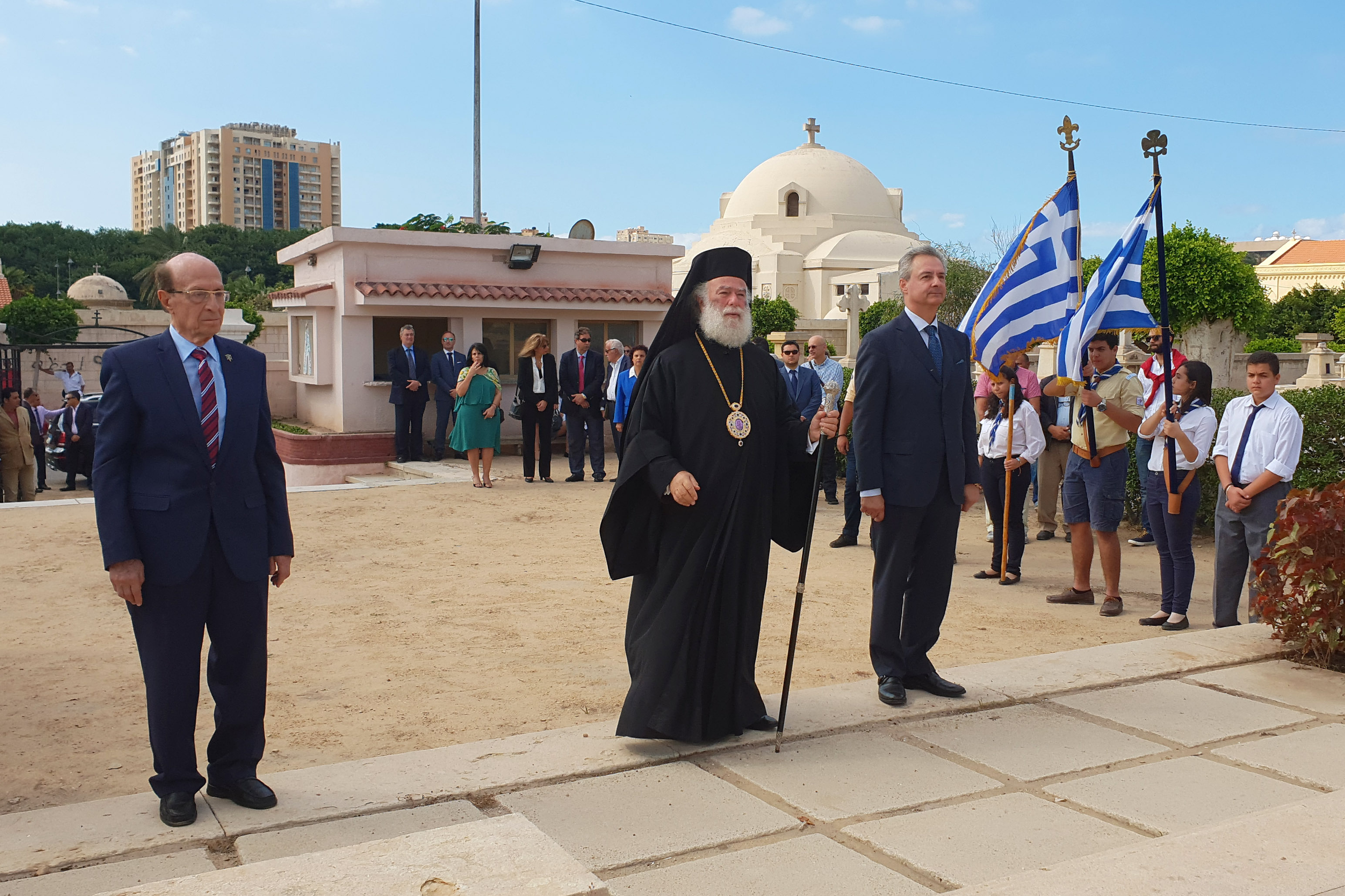Ο προκαθήμενος της Ορθόδοξης Εκκλησίας της Αφρικής, αφού έψαλε τον εθνικό ύμνο, αλλά και, συμβολικά, το «Χριστός Ανέστη», τόνισε ότι «δεν κλείνουμε τις εκκλησίες, αλλά τις ανοίγουμε, τις ανακαινίζουμε και τις παραδίδουμε στη δόξα του γένους των Ελλήνων, για τη δόξα της Ορθοδοξίας μας, εδώ στη θεοβάδιστη χώρα της Αιγύπτου, με τις καμπάνες να κτυπάνε παντού και να διαλαλούν τη φιλία των μεγάλων χωρών της Ελλάδας, της Αιγύπτου και της Κύπρου».