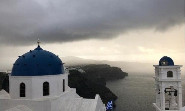 Σοβαρές ζημιές προκλήθηκαν στην εκκλησία της Αναστάσεως στο Ημεροβίγλι της Σαντορίνης, καθώς κεραυνός σημάδεψε καμπαναριό.