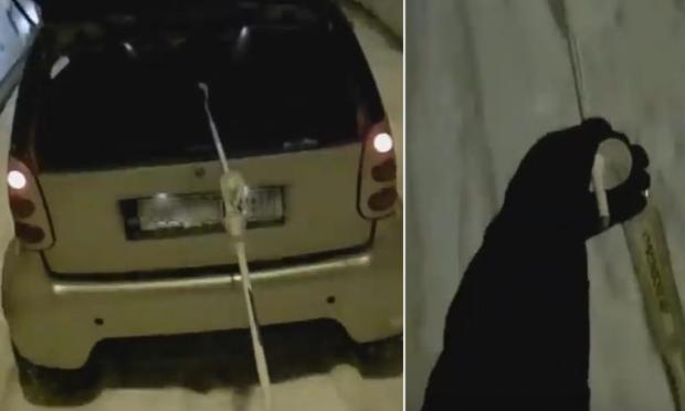 Εντυπωσιακό. Έκανε σκι δεμένος πίσω από το αυτοκίνητο!
