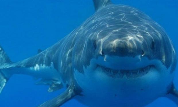 Με το στόμα ορθάνοιχτο, ο λευκός καρχαρίας άρπαξε το ψάρι και ξαναβυθίστηκε στο νερό, αφήνοντας τους πάντες αποσβολωμένους.