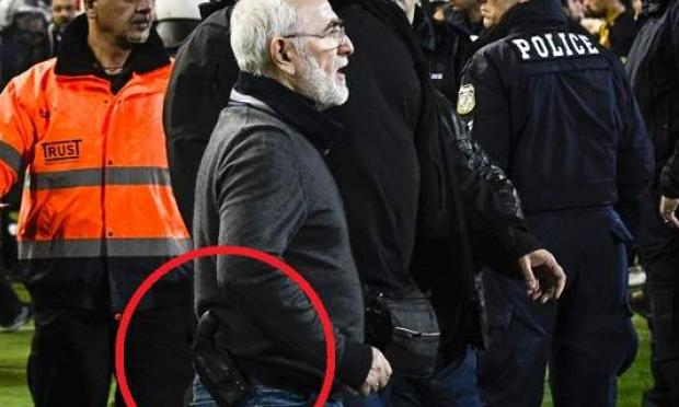 Στο 90' του ντέρμπι ΠΑΟΚ-ΑΕΚ οι γηπεδούχοι σκόραραν αλλά με οφσάιντ, ο διαιτητής Κομίνης το ακύρωσε και αμέσως έκανε ντου στο γήπεδο με μπράβους του ο Ιβάν Σαββίδης! Μάλιστα, όπως δείχνουν οι φωτογραφίες ο μεγαλομέτοχος της ΠΑΕ ΠΑΟΚ εισέβαλε με περίστροφο!
