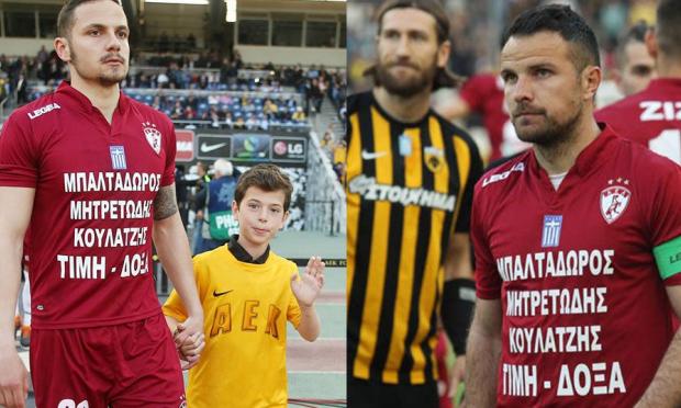 Από κάτω συμπληρώνεται η φράση: «Τιμή – Δόξα». Υπενθυμίζεται ότι μέχρι τώρα, στη φανέλα της ομάδας της Λάρισας υπήρχε το μήνυμα «Ο Αλέξανδρος μιλούσε ελληνικά» με προφανή παραπομπή στο Μακεδονικό. Και στο παρελθόν η φανέλα της ΑΕΛ είχε μηνύματα στο μπροστινό μέρος της. «Τα προσφυγόπουλα είναι παιδιά μας» και «Μάνδρα, 23 νεκροί, ντροπή», είναι κάποια παλαιότερα.