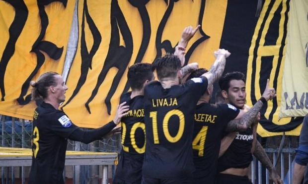 Στη συνέχεια, ακολούθησε η… ομορφιά του Αραούχο. Ο Σιμόες άνοιξε την μπάλα στον Λιβάγια, που έβγαλε μπαλιά στον αμαρκάριστο Αργεντινό. Ο φορ της ΑΕΚ έκανε άψογο κοντρόλ με το στήθος, σούταρε με τη μία -από πλάγια θέση- και έστειλε την μπάλα στα δίχτυα για το 0-1 του ημιχρόνου.