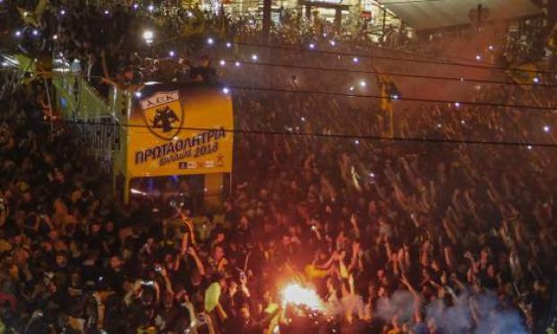 Με ανοιχτό πούλμαν που έγραφε «Πρωταθλητές, τα καλύτερα έρχονται» οι ποδοσφαιριστές της ΑΕΚ και ο Μανόλο Χιμένεθ αποθεώθηκαν για 3 ώρες από την αρχή της οδού Δεκελείας μέχρι το σημείο που θα χτιστεί το νέο γήπεδο. Περισσότεροι από 40.000 οπαδοί (σύμφωνα με εκτιμήσεις της ΕΛΑΣ) βρισκόντουσαν στους δρόμους της περιοχής για να χειροκροτήσουν τους «κιτρινόμαυρους» και όλοι μαζί έδωσαν ραντεβού για το επόμενο Σάββατο, μετά τον τελικό του Κυπέλλου με τον ΠΑΟΚ, με την ευχή να γιορτάζουν το νταμπλ.