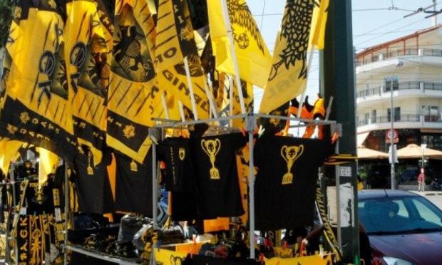 Με σημαίες στα μπαλκόνια, φανέλες, κασκόλ προς πώληση στους δρόμους αλλά και καφέ γεμάτα από φίλους της Ένωσης που περιμένουν την έναρξη του αγώνα συνθέτουν το σκηνικό, με τους φιλάθλους της ΑΕΚ να δίνουν τον τόνο, λίγο πριν ο Ισπανός Μπορμπαλάν, σφυρίξει σέντρα στην αναμέτρηση που θα κρίνει τον φετινό κυπελλούχο.