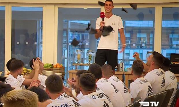 Ο Έλληνας τερματοφύλακας πήρε μετεγγραφή στη Μπενφίκα από τον Παναθηναϊκό την περασμένη σεζόν και στην πρώτη του παρουσία στην Πορτογαλία, φαίνεται ότι έχει ήδη κάνει φίλους στην ομάδα των «λιονταριών», αφού τα «πειράγματα» την ώρα του τραγουδιού του, έδιναν και έπαιρναν.