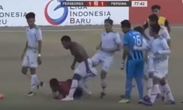 Το περιστατικό σημειώθηκε στην αναμέτρηση της Persegres Gresik United κόντρα στην Persiwa Wamena του πρωταθλήματος της Ινδονησίας και όπως θα δείτε στο παρακάτω βίντεο, οι παίκτες της Persiwa πήραν... πολύ βαριά το σφύριγμα του διαιτητή….