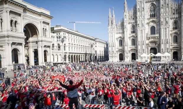Κατέκλυσε την πλατεία Ντουόμο και φώναξε, τραγούδησε και χειροκρότησε για τον αγαπημένο του σύλλογο. Ένα από τα πανό που ξεχώριζαν έγραφε: «Θρύλος και η πόλη υποκλίνεται».