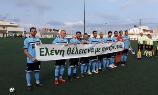 Οι δύο ομάδες βγήκαν στη σέντρα και εκείνη την στιγμή οι ποδοσφαιριστές των γηπεδούχων, κράτησαν ένα πανό στα χέρια το οποίο έγραφε: «Ελένη θέλεις να με παντρευτείς;», με τον Φραγκιαδάκη να ανεβαίνει στην εξέδρα και να ακούει το πολυπόθητο «ναι»!