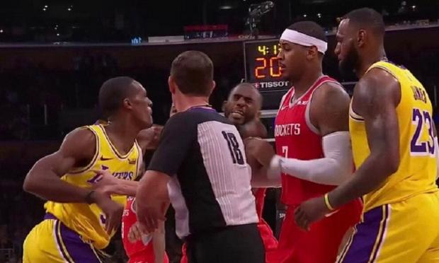 Το παιχνίδι Λ.Α. Λέικερς-Ρόκετς ήθελε-δεν ήθελε ένα 5λεπτο για να λήξει. Με το σκορ στο 109-108 υπέρ των φιλοξενούμενων, Ραζόν Ρόντο και Κρις Πολ είχαν έναν έντονο διάλογο, ο δεύτερος απώθησε το πρόσωπο του πρώτου και εκείνος απάντησε με γροθιά. Στον καβγά όρμησε και ο Μπράντον Ίνγκραμ ρίχνοντας κι αυτός μια μπουνιά, ενώ ο Λεμπρόν Τζέιμς σε ρόλο «πυροσβέστη» απομάκρυνε τον καλό του φίλο, Κρις Πολ, για να τον ηρεμήσει. Ο τελευταίος ισχυριζόταν ότι ο Ρόντο τον είχε φτύσει κι έτσι άρχισαν όλα.