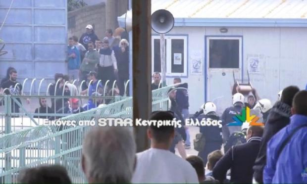 Συγκεκριμένα οπαδοί των φιλοξενουμένων που βρισκόντουσαν στο πέταλο του γηπέδου συγκρούστηκαν με τις αστυνομικές δυνάμεις και οι εξέδρες του σταδίου θύμισαν πεδίο μάχης με τις δυο πλευρές να ανταλλάσσουν πυρσούς, αντικείμενα και δακρυγόνα. Πολλοί γονείς πήραν τα παιδιά τους και αποχώρησαν από το γήπεδο, ενώ οι μάχες αστυνομίας οπαδών κράτησαν για περίπου 10 λεπτά με αποτέλεσμα να προκληθούν φθορές στο στάδιο και η έναρξη του αγώνα να καθυστερήσει.
