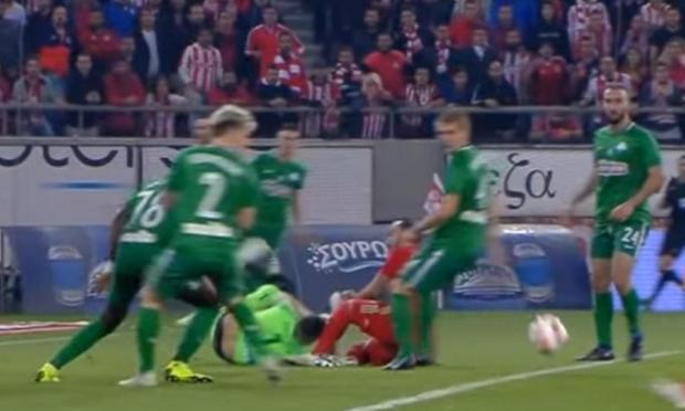 Σοκ προκαλεί το βίντεο με τη στιγμή της σύγκρουσης του τερματοφύλακα του Παναθηναϊκού Σωκράτη Διούδη με τον Νάτχο του Ολυμπιακού στο 49ο λεπτό του ντέρμπι του Φαλήρου που έληξε ισόπαλο 1-1.
