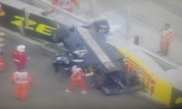 Ο Γερμανός «πιλότος», είχε μία σύγκρουση με τον Γκροζιάν με αποτέλεσμα το μονοθέσιο της Renault να φέρνει αρκετές τούμπες και να καταλήγει εγκλωβισμένος.