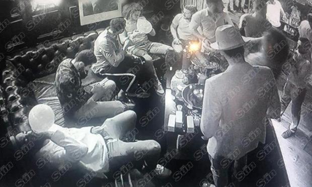 Ο Özil και ο Guendouzi φαίνεται να λιποθυμούν έχοντας «μπαλόνια» στο στόμα τους, πριν να πέσουν πάνω στους βελούδινους καναπέδες στο πριβέ Tape club του Mayfair.