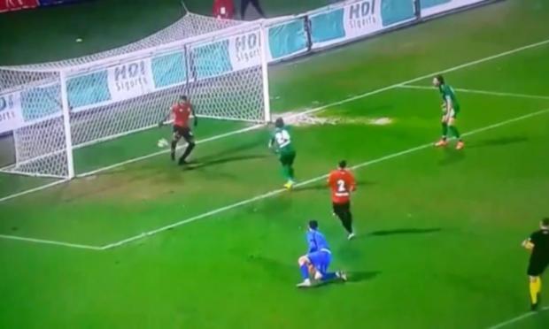 Ο παίκτης που προσπάθησε να μαρκάρει τον Τσαλίκ όμως πρόλαβε να “μπει” και πάλι στη φάση και έδιωξε το πλασέ που έγινε πάνω στη γραμμή του τέρματος. Να αναφέρουμε ότι το ντέρμπι κορυφής έμεινε στο 0-0.
