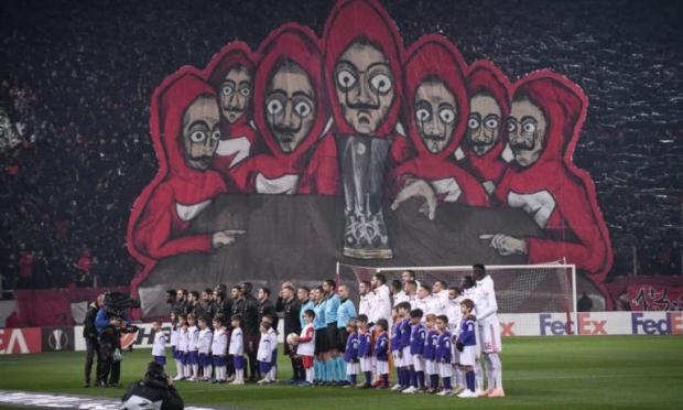 Δείτε το εντυπωσιακό κορεό που σήκωσαν οι φίλοι του Ολυμπιακού πριν την έναρξη του αγώνα με τη Μίλαν και που αφορούσε τη δημοφιλή ισπανική σειρά "La Casa de Papel".