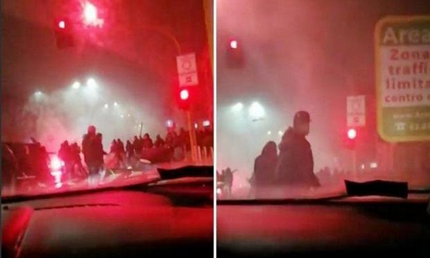 Το όχημα που μετέφερε τους οπαδούς των «παρτενοπέι» «παγιδεύτηκε» την ώρα που γίνονταν τα επεισόδια. Δέχτηκε επίθεση με ρίψη αντικειμένων από τους εξαγριωμένους φιλάθλους της Ίντερ και μέσα σε λίγα λεπτά ακολούθησαν μάχες σώμα με σώμα.