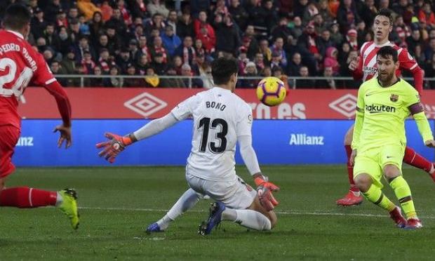 Η απόσταση του Μέσι από τον τερματοφύλακα της Ζιρόνα ήταν μερικά εκατοστά όμως ο Αργεντινός έστειλε τη μπάλα ακριβώς εκεί που έπρεπε, στο μοναδικό σημείο που δεν υπήρχε τρόπος για τους γηπεδούχους να αποφύγουν το μοιραίο.