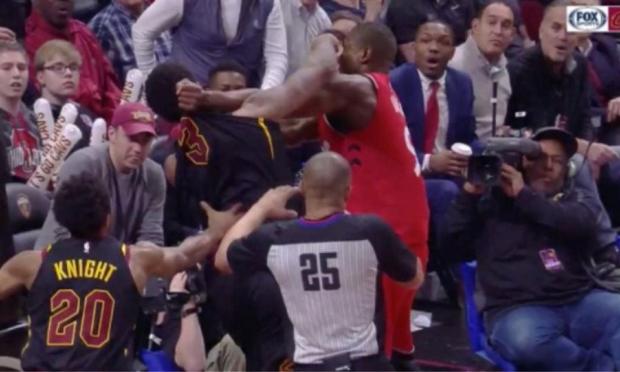 Σε ρινγκ μετατράπηκε για λίγα δευτερόλεπτα το παρκέ του αγώνα Ράπτορς-Καβς για το ΝΒΑ.