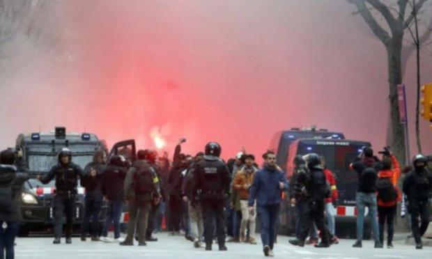 Εκατοντάδες οπαδοί της Λιόν βρέθηκαν στη Βαρκελώνη για τον αγώνα του Champions League, ανάμεσα στην ομάδα τους και τη Μπαρτσελόνα, βάζοντας «φωτιά» στην πρωτεύουσα της Καταλονίας.