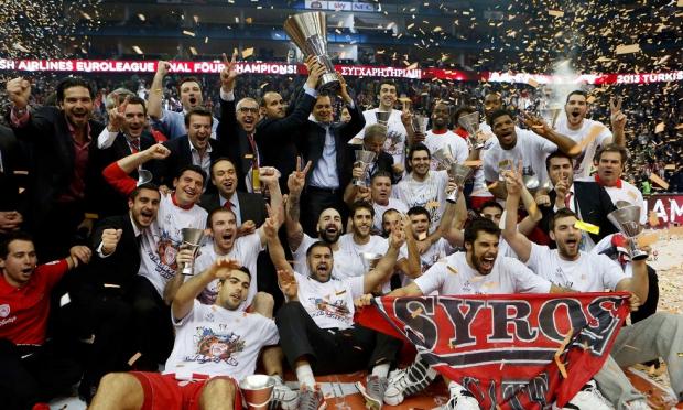 Στις 12 Μαϊου του 2013 οι παίκτες του Γιώργου Μπαρτζώκα κατάφεραν κάτι που μόνο η Μακάμπι Τελ Αβίβ είχε πετύχει (2003, 2004) στο παρελθόν μαζί με την Γιουγκοπλάστικα (1989, 1990, 1991), γράφοντας με χρυσά γράμματα το όνομα του Ολυμπιακού στο πάνθεον του ευρωπαϊκού μπάσκετ.