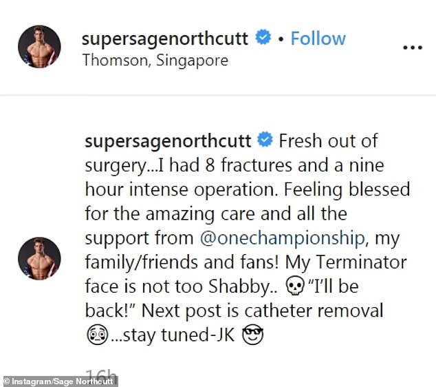 Ο Sage Northcutt έκανε πλάκα στο ποστάρισμα μετά την ήττα του, καθώς ως άλλος Άρλοντ Σαβρτσενέγκερ υποσχέθηκε «I' ll be back».