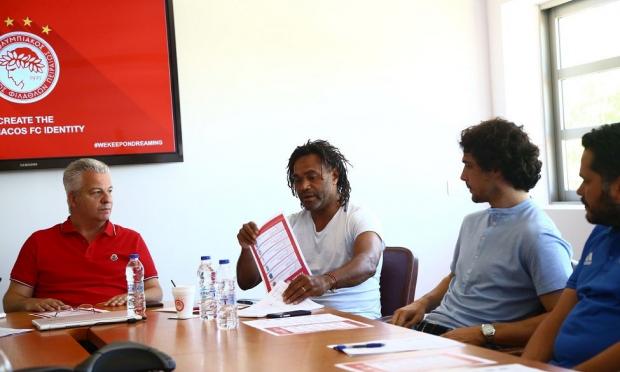 «Το βασικό μας θέμα. Είμαστε ένα. Δεν υπάρχουν «σύνορα». Είμαστε ένα. Η επαγγελματική ομάδα με την Ακαδημία. Φέτος θα έχουμε μαζί μας τον κ. Πίκουλα. Θα είναι πολύ σημαντικός για εμάς. Η Ακαδημία μας δουλεύει πολύ καλά. Είδατε και την αφοσίωση του κ. Μαρτίνς με τα νέα παιδιά και την Ακαδημία. Ορισμένα παιδιά θα είναι στην Ακαδημία. Θέλαμε από πέρυσι να χτίσουμε μία νέα βάση. Τρία χρόνια πριν που ήμουν στην πρώτη ομάδα είχα εικόνα από τον Ολυμπιακό. Θέλουμε να έχουμε την ταυτότητα του Ολυμπιακού και να προωθήσουμε τις αξίες μας. Το όραμά μας είναι να δημιουργούμε παίκτες. Επίσης να έχουμε νοοτροπία νικητή. Είμαστε στην πιο μεγάλη ομάδα στην Ελλάδα και θέλουμε να έχουμε σχέσεις με τις πιο μεγάλες ομάδες. Η στρατηγική μας είναι το πως θα πετύχουμε. Ένα σκέλος είναι η προετοιμασία στο εξωτερικό. Η φιλοσοφία μας και οι αξίες μας είναι ξεκάθαρες. Θέλουμε να την δείχνουμε στο γήπεδο. Έχουμε τις στιγμές του αγώνα, τις βασικές αρχές του παιχνιδιού και τις συμπεριφορές. Υπάρχει το build up του παιχνιδιού, το πως «χτίζουμε» το παιχνίδι από πίσω με τον γκολκίπερ. Είναι τρομερό να βλέπεις τα παιδιά της Κ-11 να λειτουργούν έτσι. Με αυτές τις βασικές ποδοσφαιρικές Αρχές».