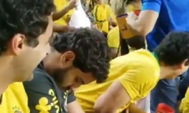 Αποτελέσμα, αυτοί που κάθονταν δίπλα στο φίλο της ομάδας τους να "σκάσουν" στα γέλια και να τραγουδάνε διάφορα συνθήματα,ενώ την ίδια ώρα τον "τραβούσαν" βίντεο κάνοντας viral το συγκεκριμένο περιστατικό.