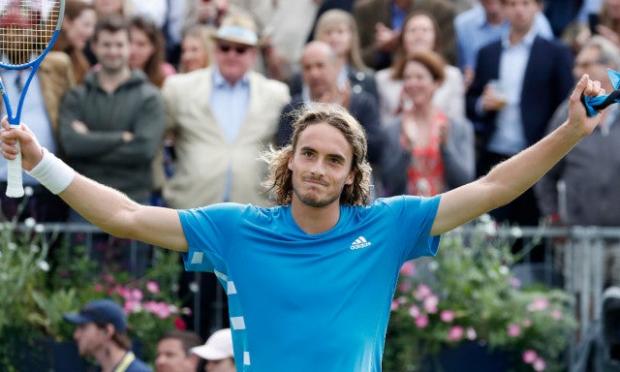 Ο Ελληνας τενίστας στο δεύτερό του παιχνίδι στο τουρνουά, κέρδισε τον Ισπανό Ρομπέρτο Μπαουτίστα Αγκούτ με 2-0 σετ (6-4, 6-4), παίζοντας πολύ καλό τένις. Ωστόσο, ο 20χρονος άσος έδειχνε να ευχαριστιέται την παρουσία του στο συγκεκριμένο τουρνουά, το οποίο γίνεται σε κλαμπ τένις της Αγγλίας, μαζί με άλλους αστέρες.
