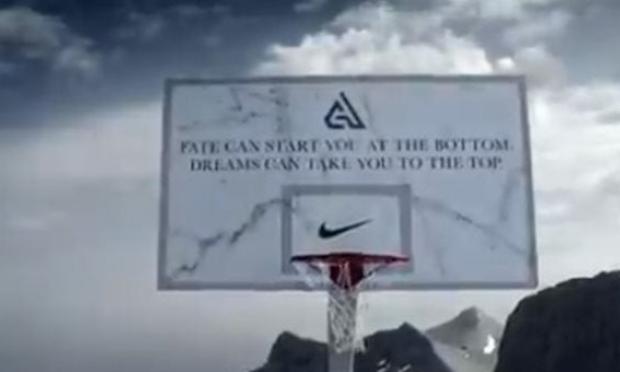 Σε βίντεο που δημιούργησε η εταιρεία αθλητικών ειδών και στη διάρκεια του οποίου ακούγεται η ιαχή: «Γιάννης, Γιάννης» διακρίνεται μία μπασκέτα, σε υψόμετρο 2.911 μέτρων στην κορυφή του βουνού των θεών, η οποία φέρει το μήνυμα: Η μοίρα μπορεί να σε ξεκινήσει από τους πρόποδες, τα όνειρα μπορούν να σε φέρουν στην κορυφή.