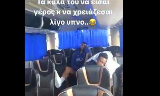 Ο «δαιμόνιος» φόργουορντ έμεινε ξύπνιος και κατέγραψε τους διεθνείς που κοιμόντουσαν, λέγοντας αστειευόμενος: «Τα καλά του να είσαι γέρος και να χρειάζεσαι λίγο ύπνο».
